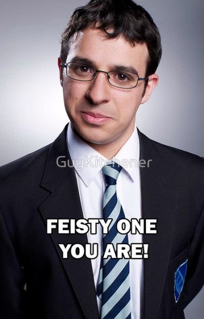 The champion is faced with a feisty challenger. But youll soon learn some respect No its just from Inbetweeners. Web Feisty one you are.